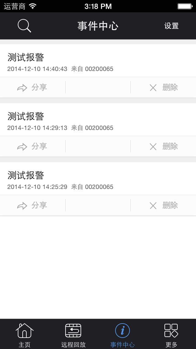In the Event Center screen, click on the message in the event message interface. You can view to see if the activity detection is turned so you can be notified and also to delete the event information that can be shared.