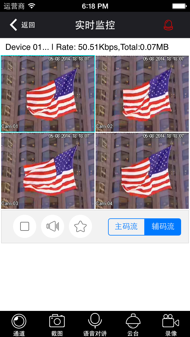 , check that the device corresponds to a scene in real-time video display. Click on the live video viewing interface button to select the device picture quality (smooth, balanced, high-definition).