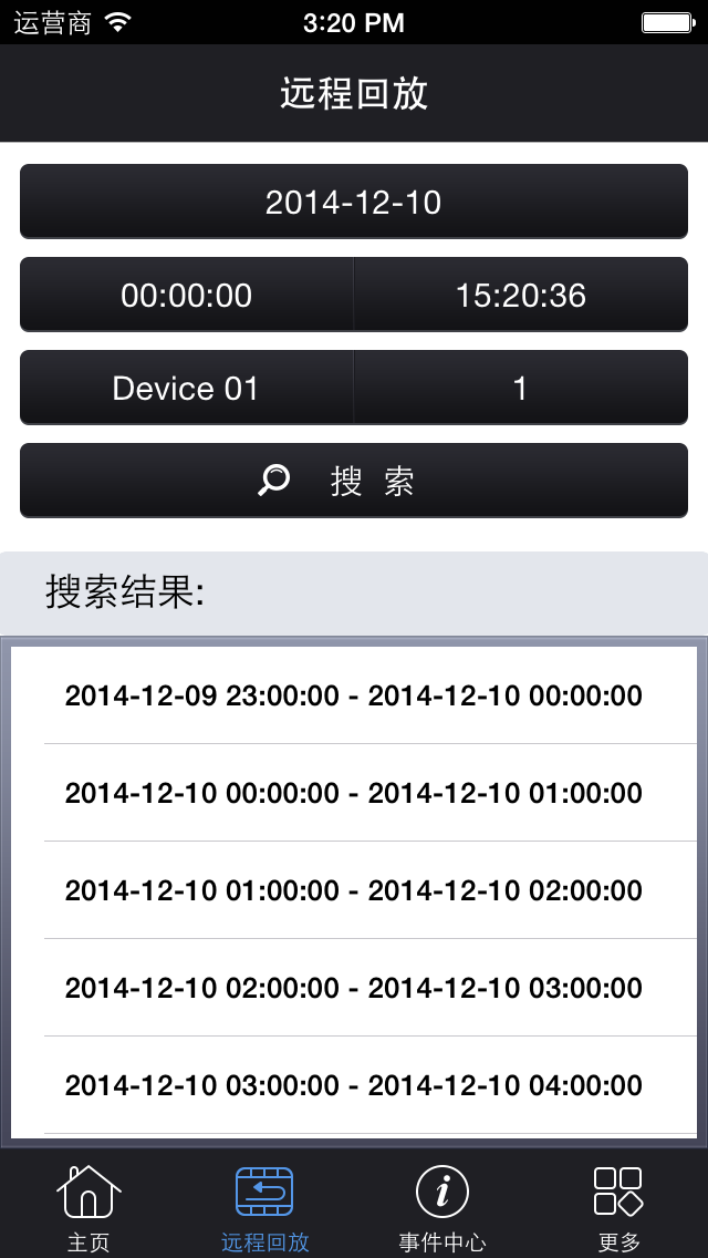 When at home with the remote playback interface, the default will be to set to find videos in chronological order. You can click on the top video search Date Set button or select the device name information for each searched video.