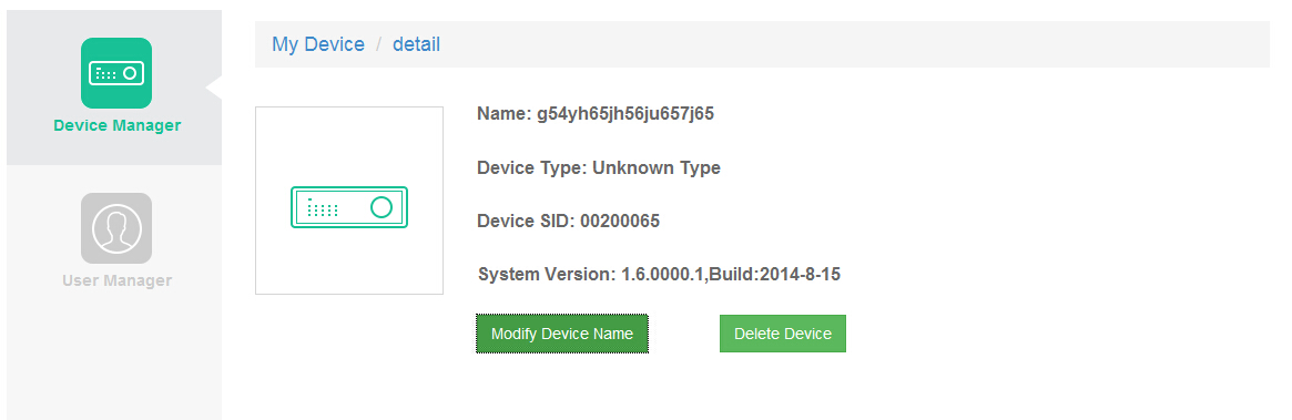 Configuration Management> My device, click on the thumbnail to view the equipment details, click the "Modify Name" button and enter the device name, click on the "OK" button to complete the modification.