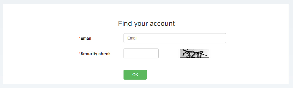 User can click “Forgot password” to go into Find your account. Follow the prompts to input email and security check, click on the "OK" button to complete.