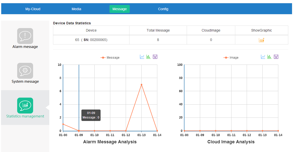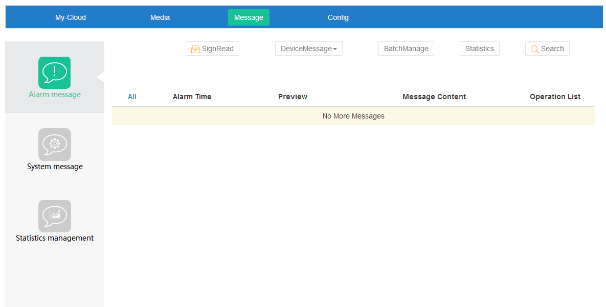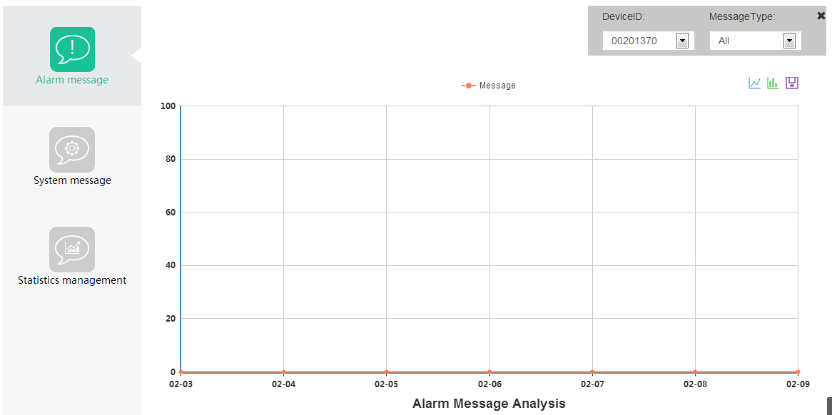 3. "Message" contains alarm messages, system messages, as well as the statistic report analysis for equipment;