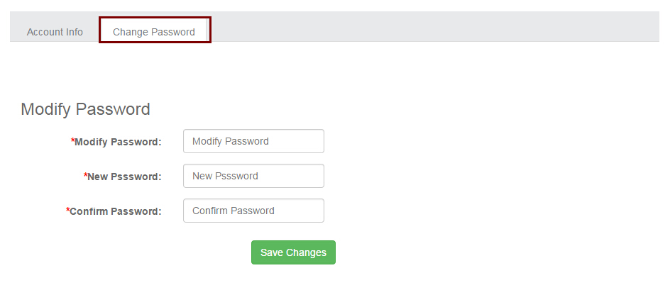 Configuration Management > User Information Management, click "Change Password", by entering the old password and new password, user can successfully modify the current account login password.