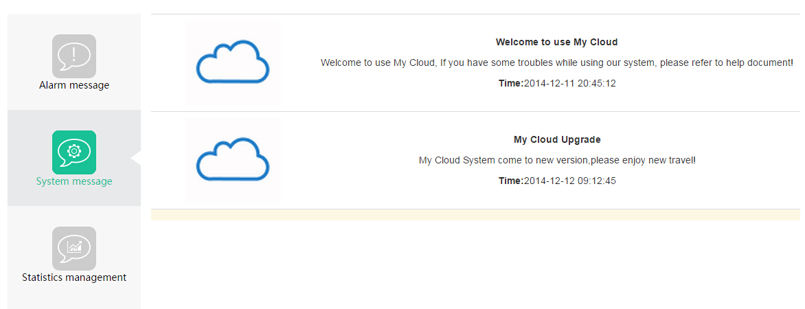 Users can check the system messages and notifications, and keep in touch with the latest information from the My Cloud!